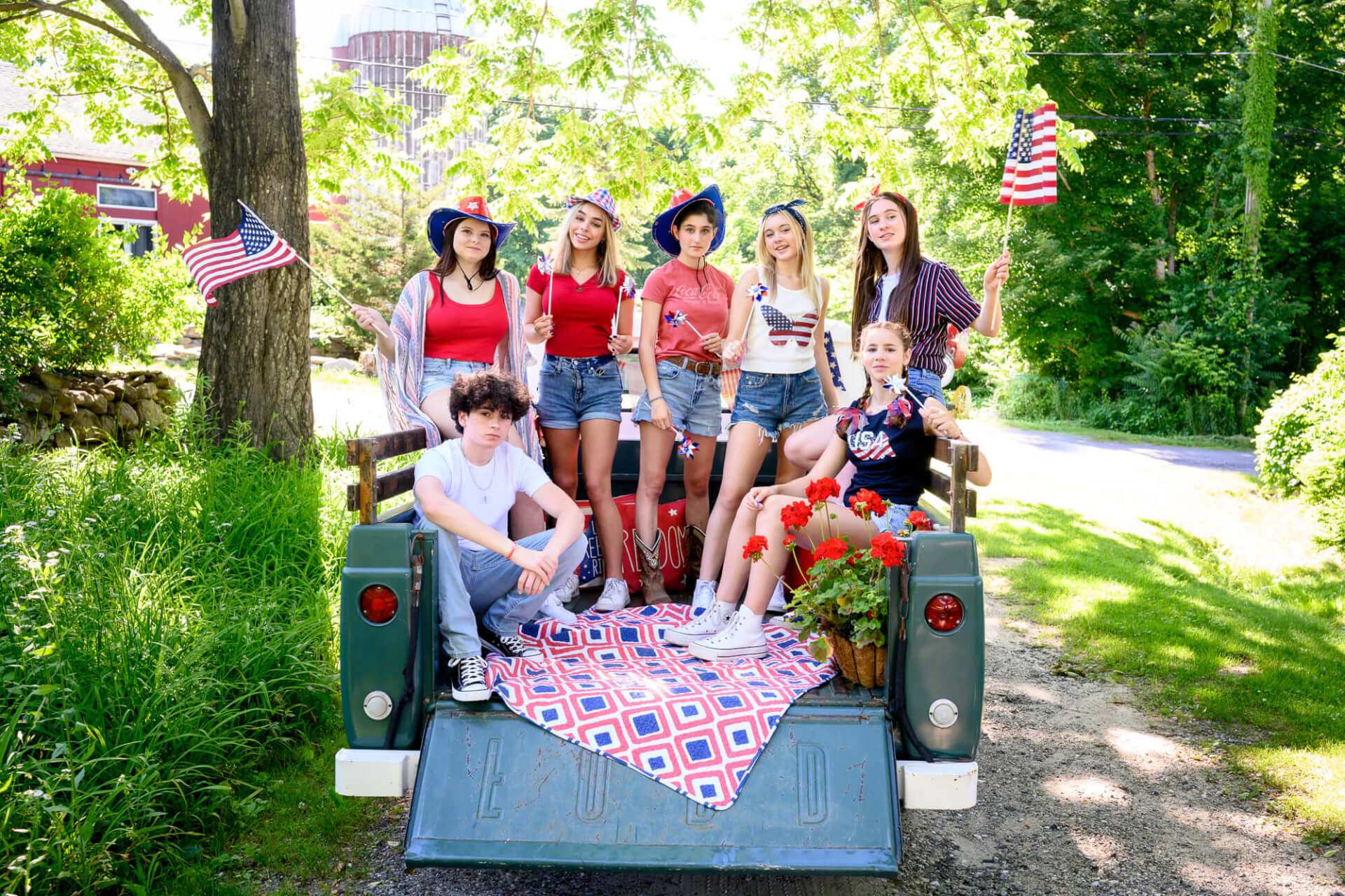 Happy birthday America! From the signing of the Declaration of Independence on July 4, 1776, to picnics, parades, and fireworks, wear your red, white and blue and reflect upon the meaning of liberty and justice for all. We wanted an excuse to get a big group together to celebrate the end of the school year and what better theme than a July 4th teen group shoot!