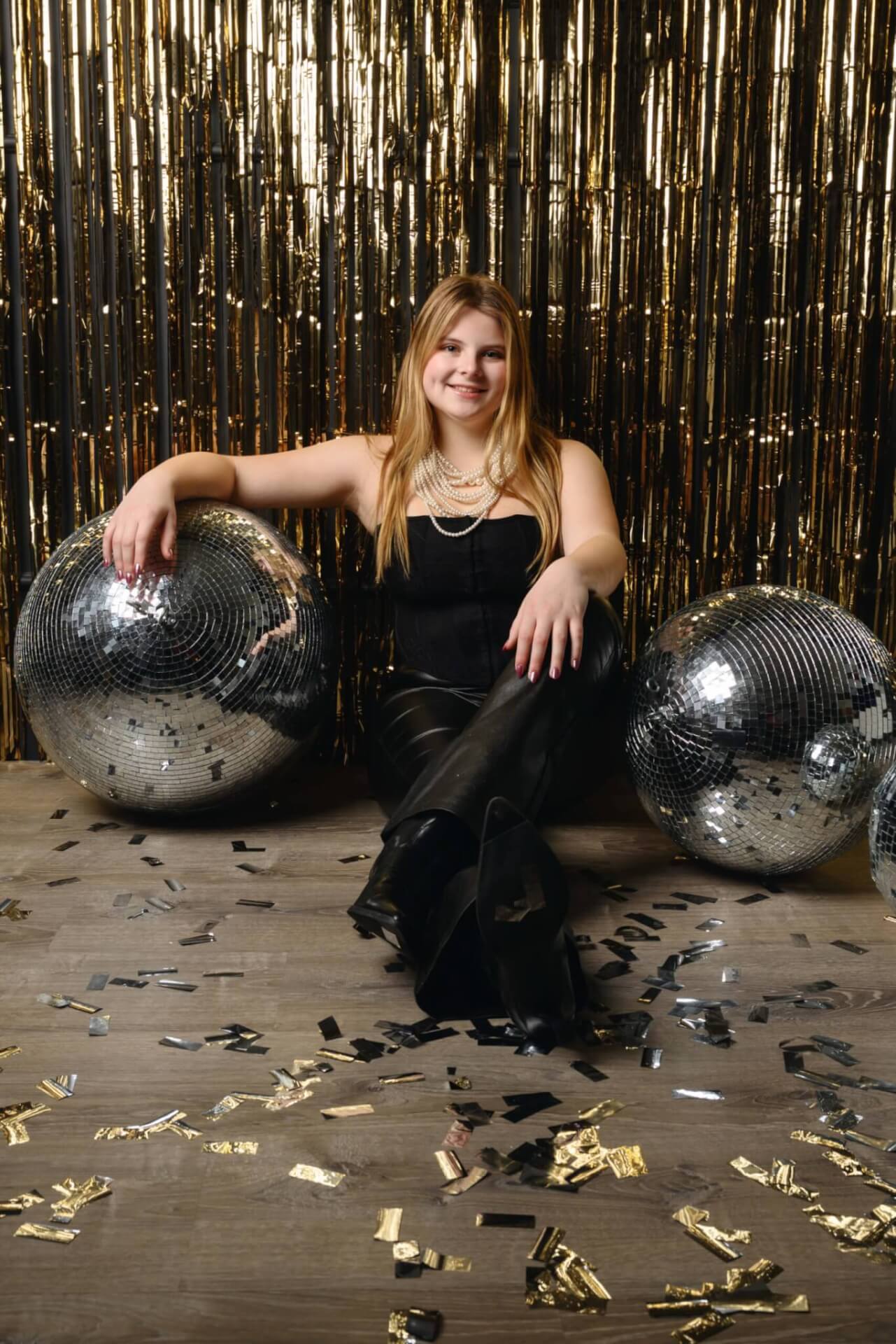 The studio was buzzing with energy during this session! Confetti may be tricky to clean up, but it’s worth every moment of laughter and spontaneity. Seeing our models light up as they posed with disco balls or giggled through confetti showers reminded us why we love what we do—creating memories that last a lifetime.
