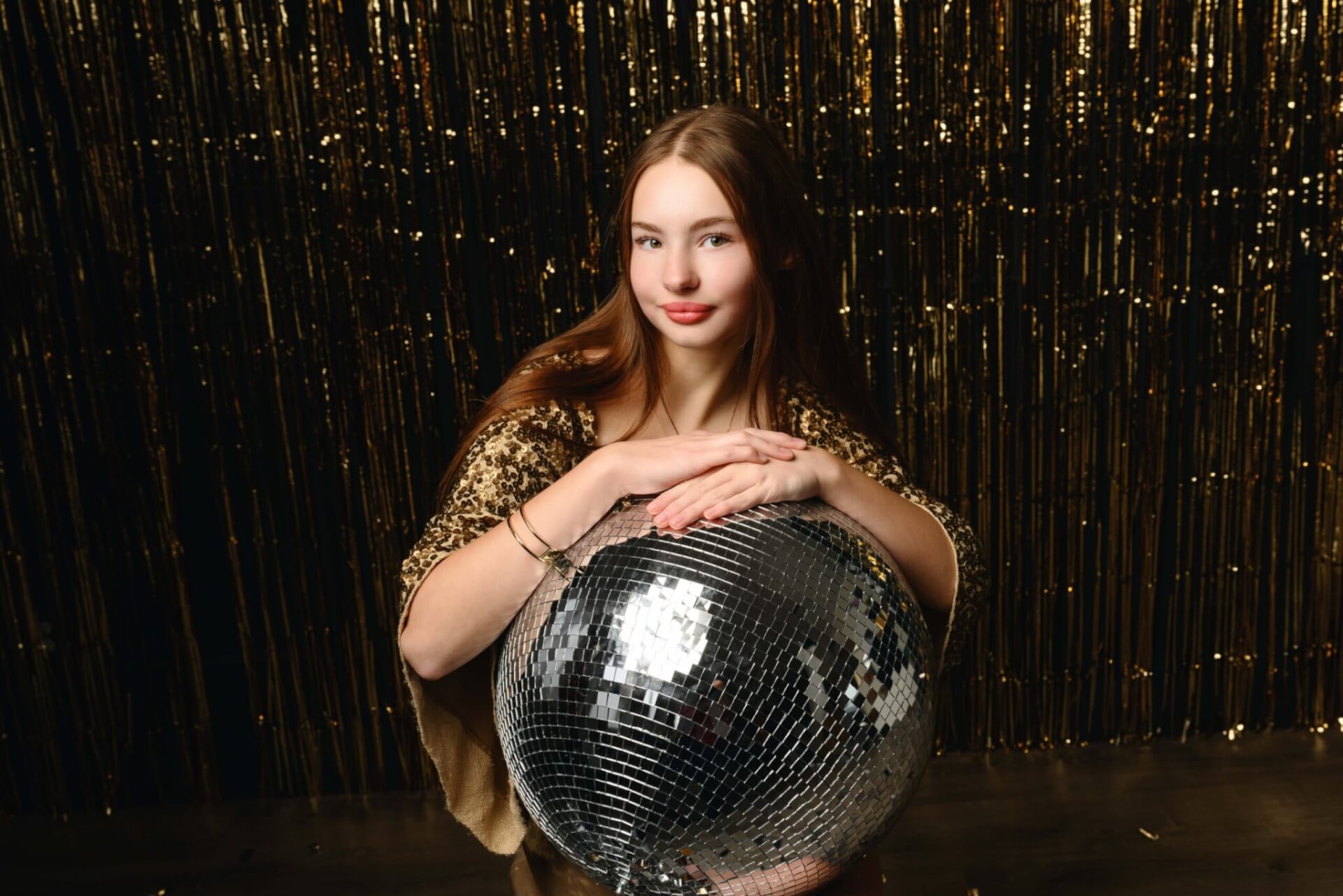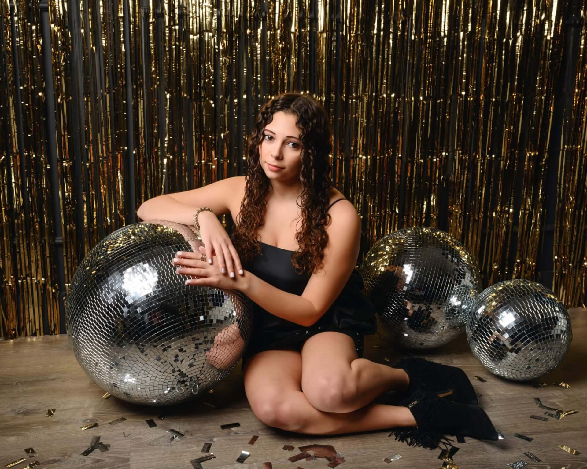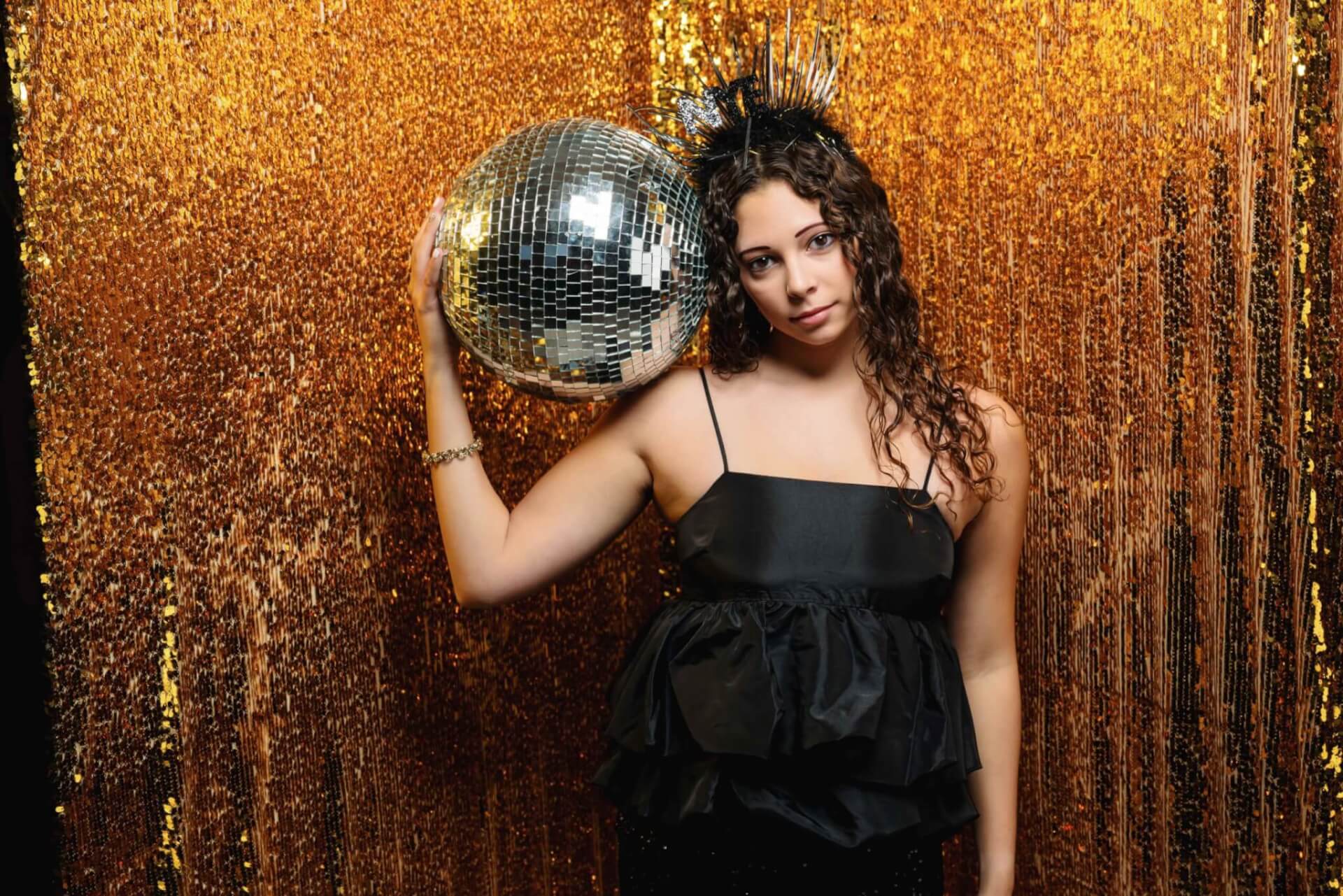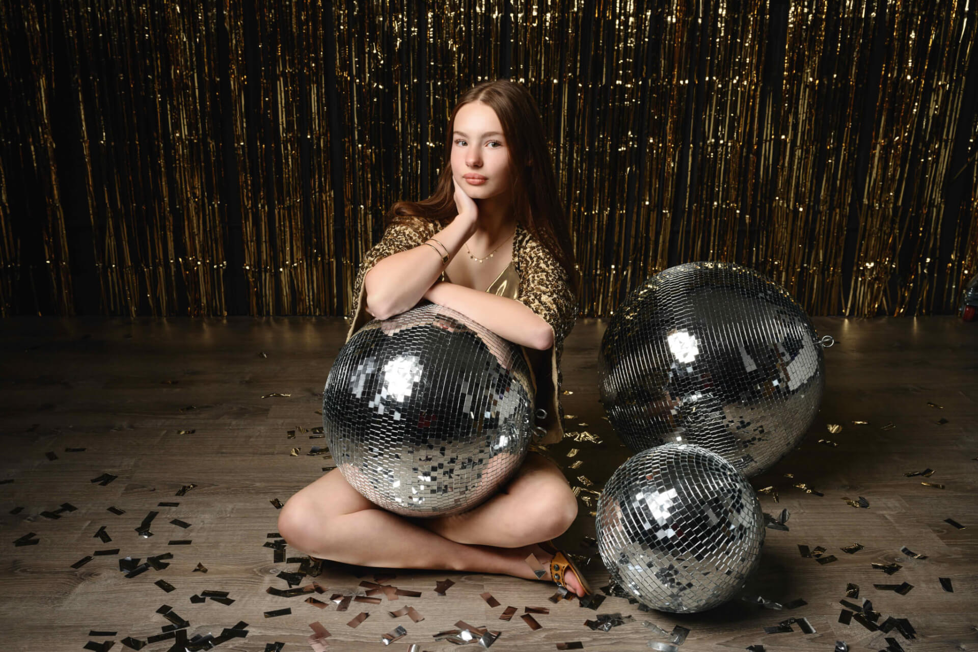Ringing in the New Year with Sparkle and Style: A festive and glamorous New Year’s Eve photoshoot filled with gold confetti, mirrored disco balls, and endless smiles.