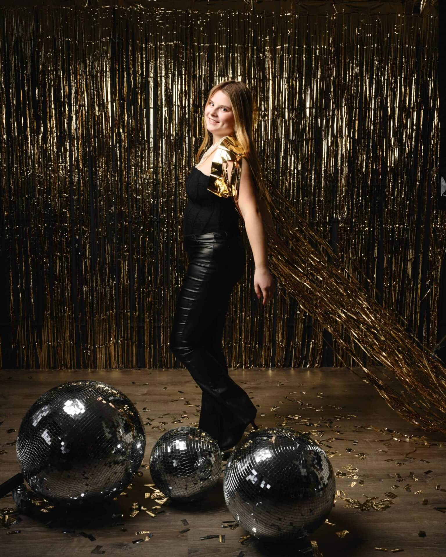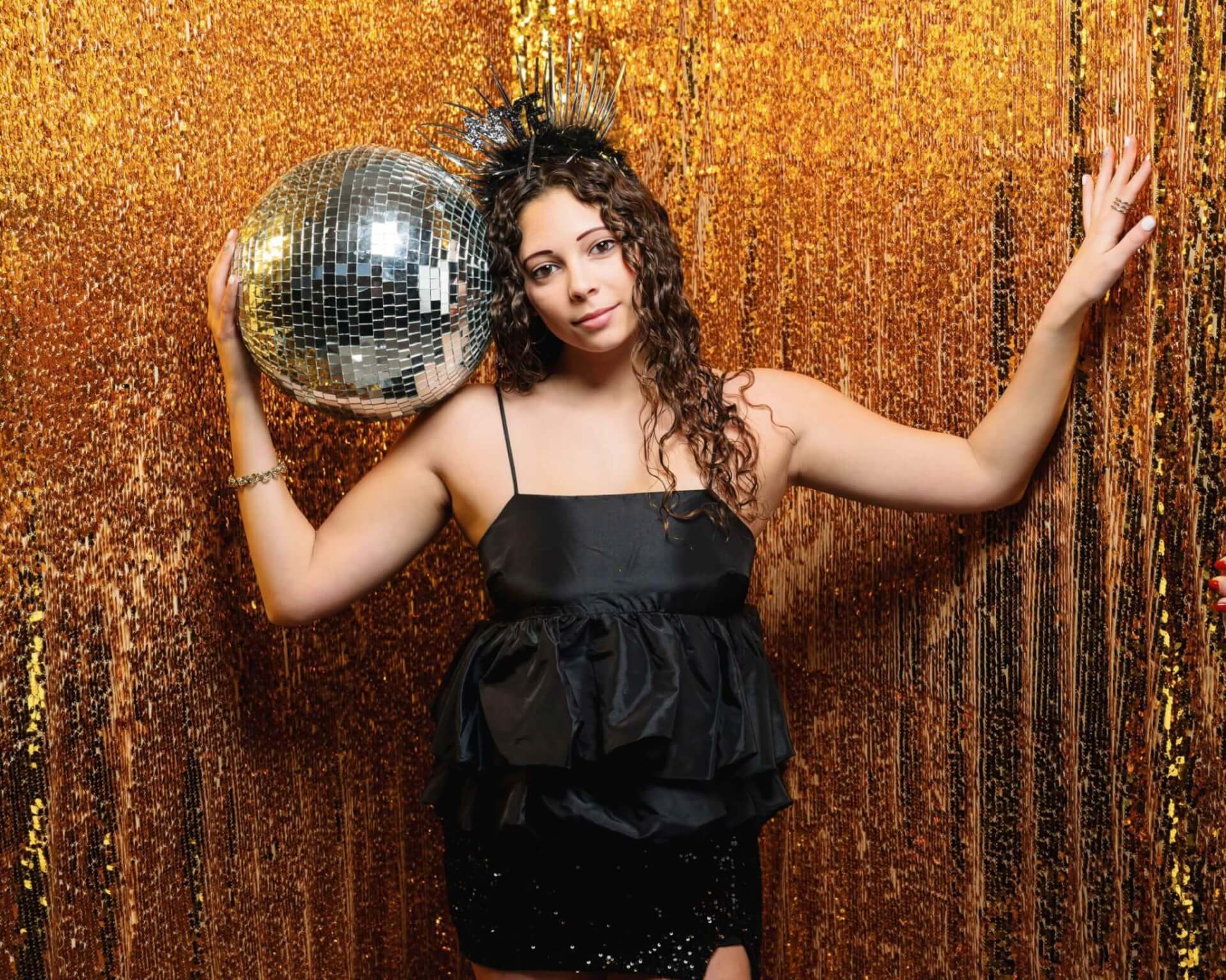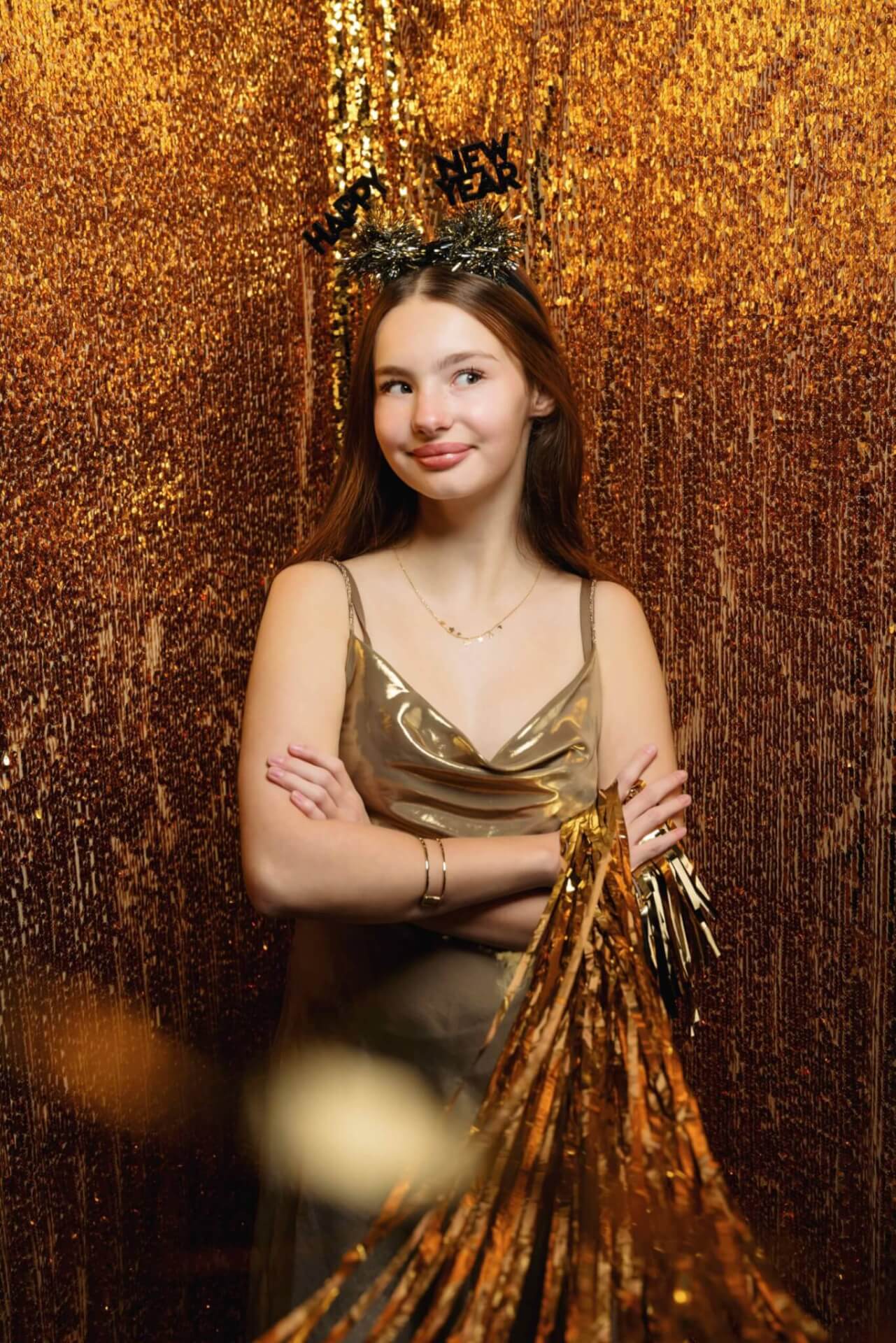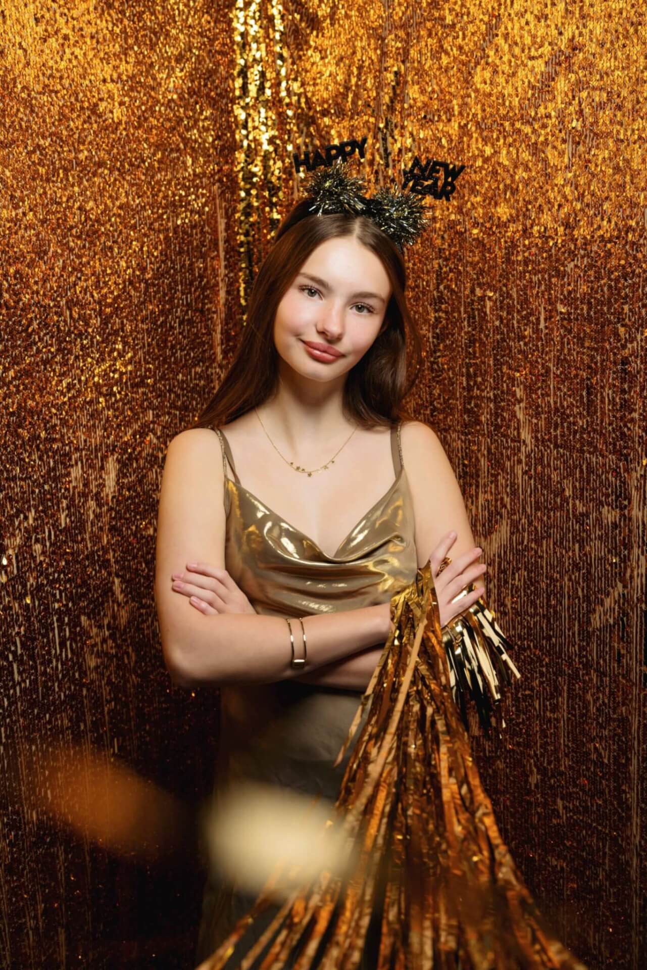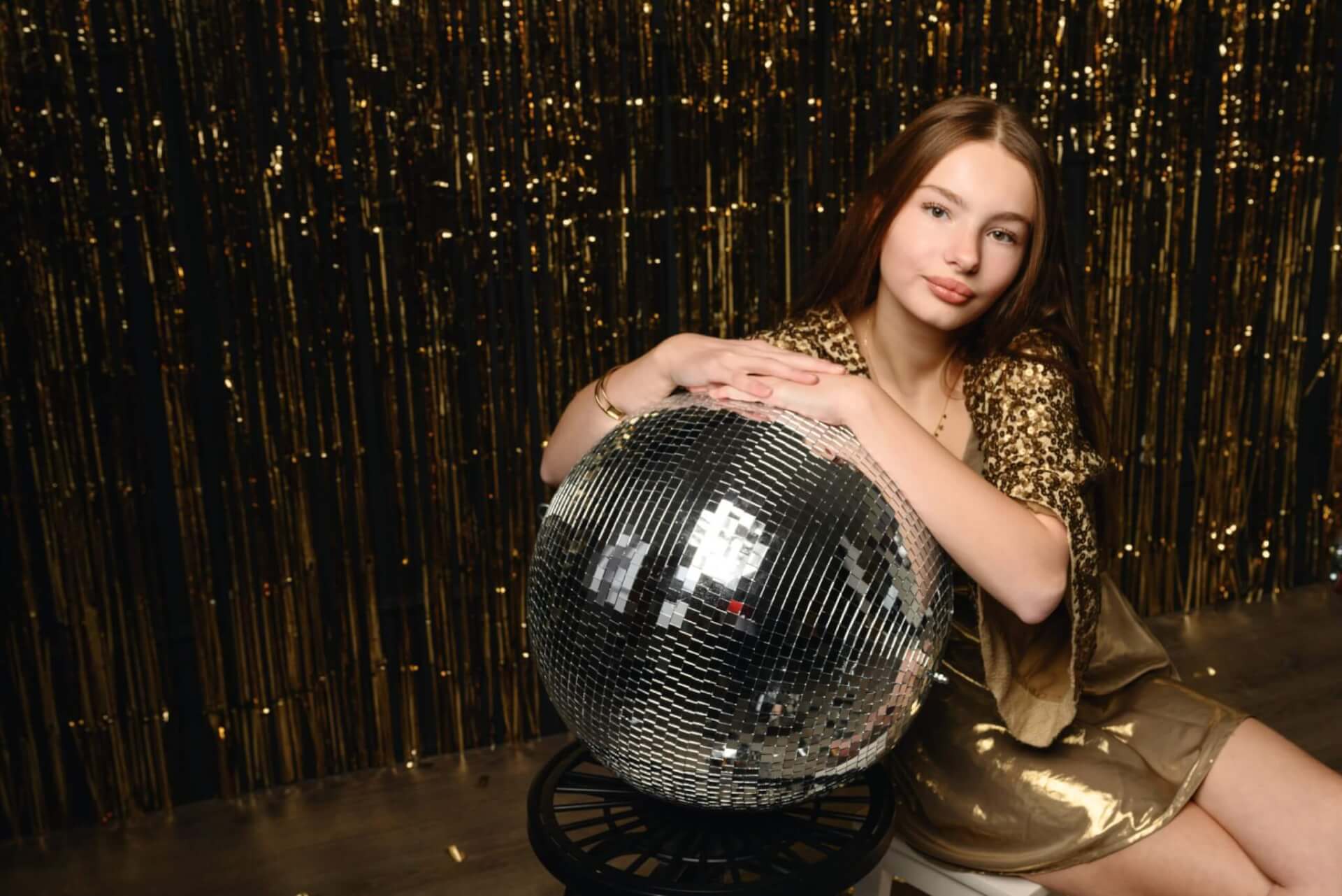 Ringing in the New Year with Sparkle and Style: A festive and glamorous New Year’s Eve photoshoot filled with gold confetti, mirrored disco balls, and endless smiles.
