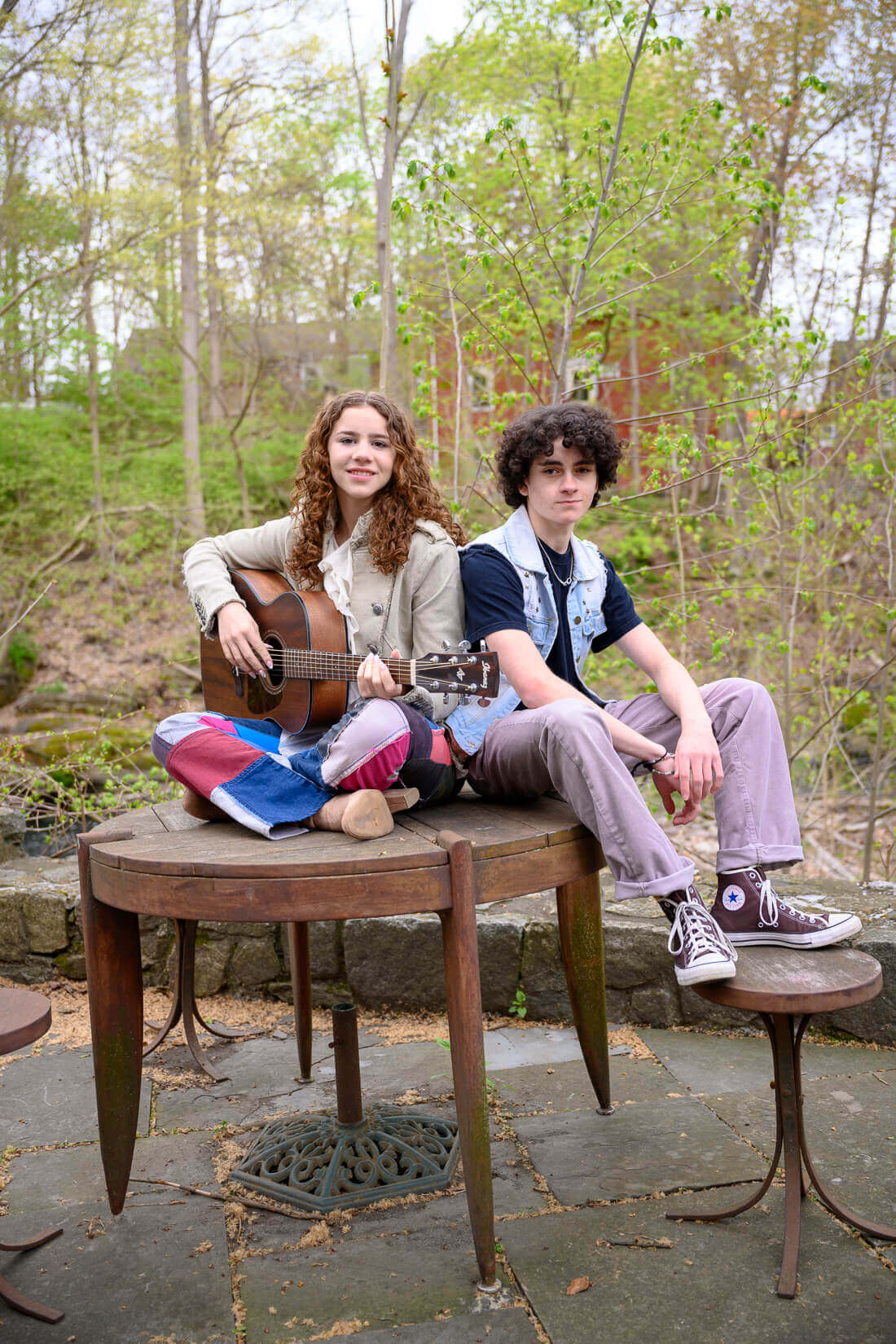 Recreating a Laurel Canyon backdrop in Connecticut was a bit more of a challenge...... So we went with a "band on tour" vibe. One of our locations was a local motel, and another roadside pit stop. We added an acoustic guitar and a vintage camera and we had our theme. What do you think? Would you come and see our band on tour?