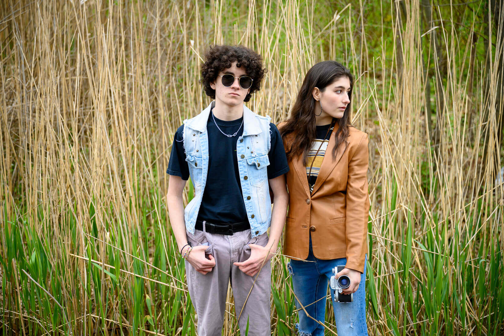 We used the Daisy Jones and the Six themed photo shoot as our Earth Day 2023 thrift store challenge. We tried to recreate a 70s band look, by sourcing most of the outfits from Goodwill, Platos Closet, and thrift store purchases!