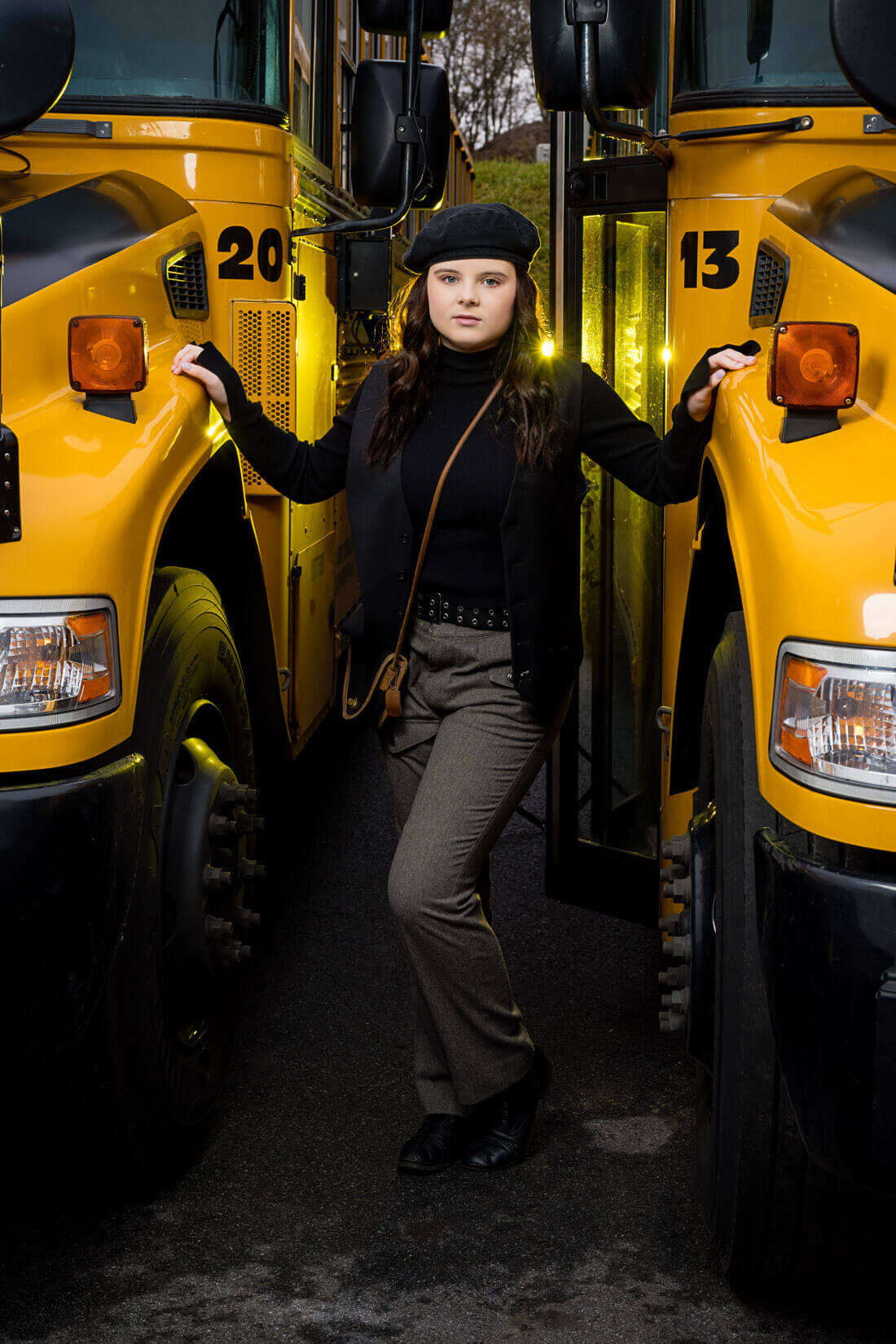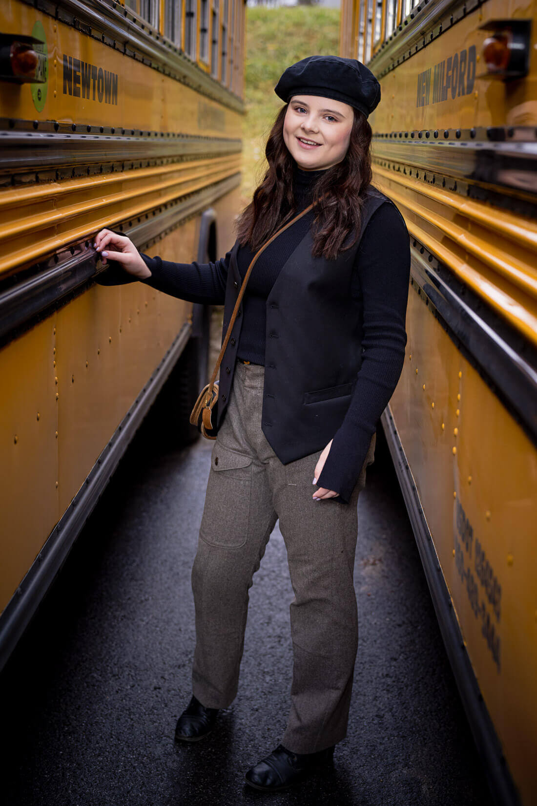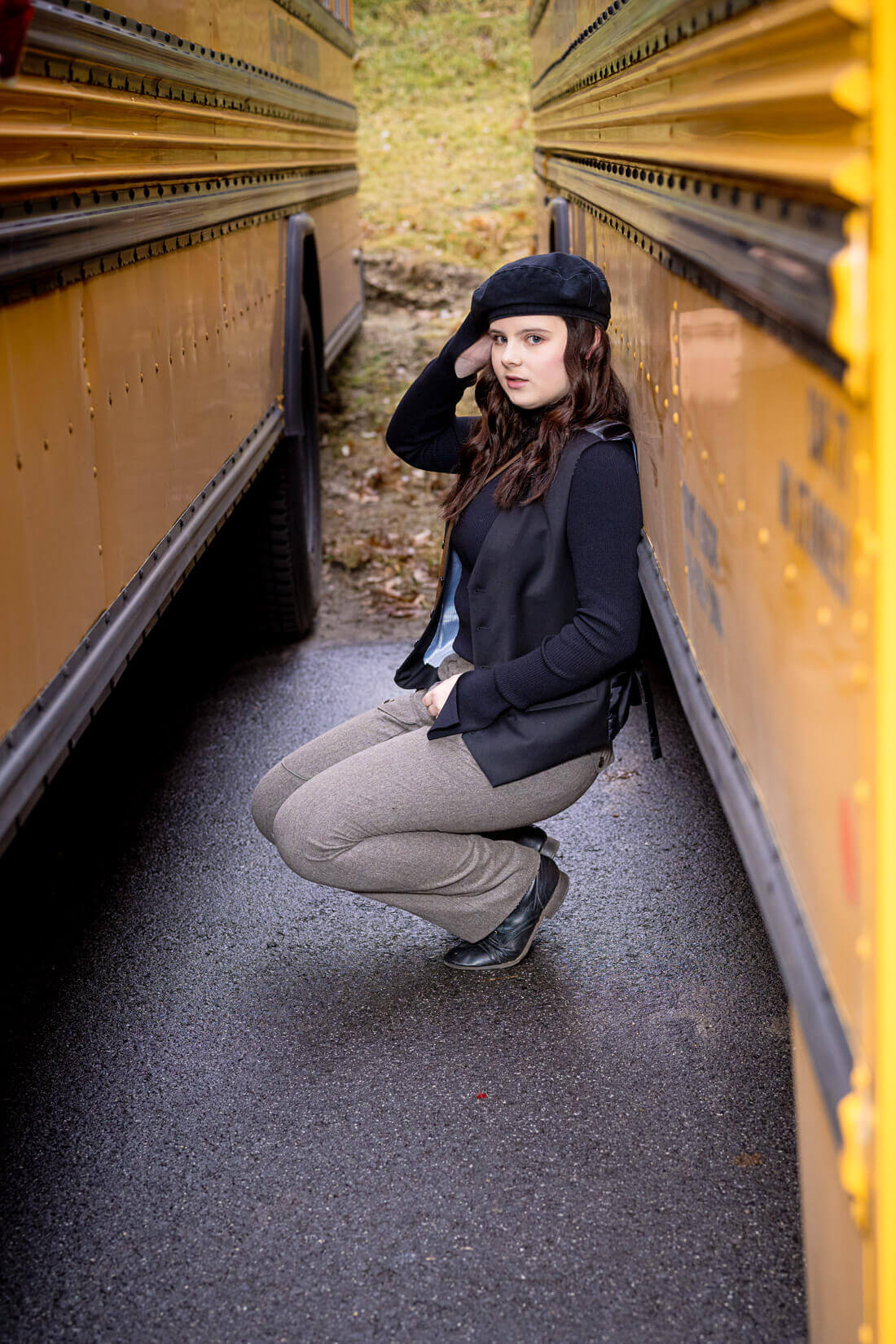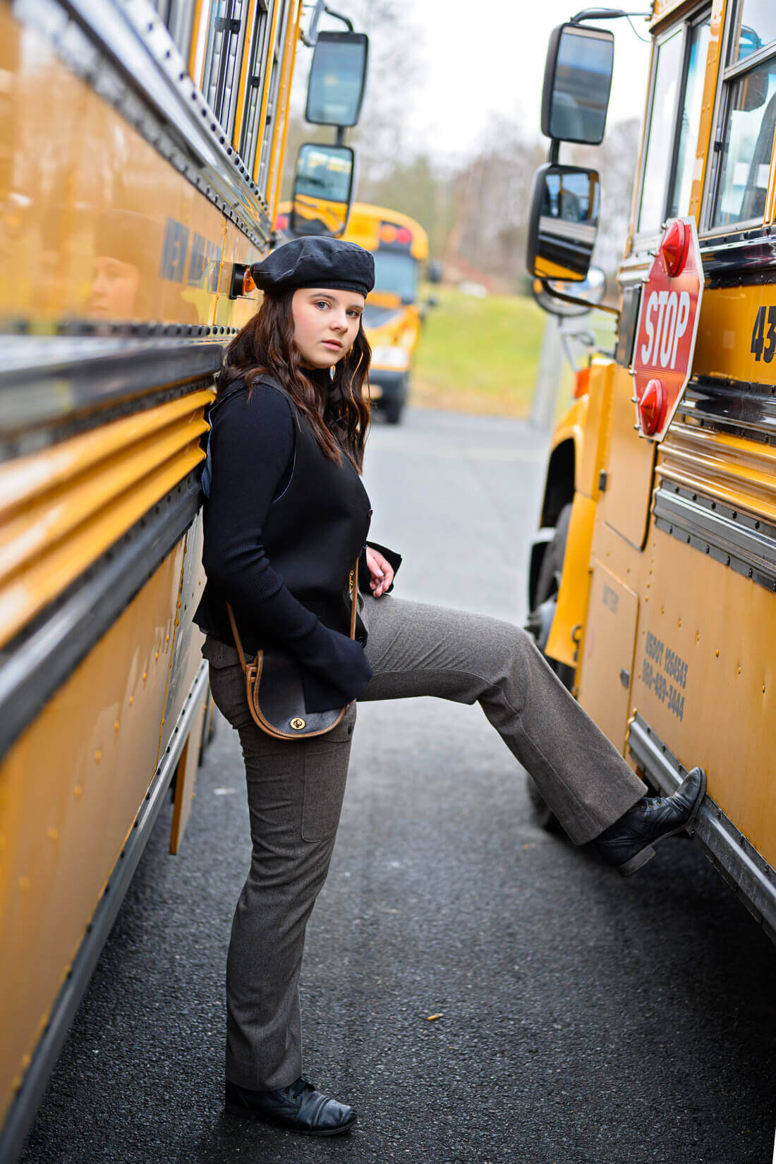 It was a little chilly at the school bus garage but Katie was a trooper and we had so much fun. I think she killed it - can you hear Nivarna and Oasis playing on your SONY walkman?